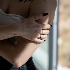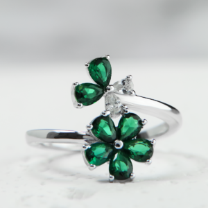 Pierścionek kwiat z rubinowymi cyrkoniami Winter Roses