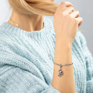 Za pomocą zawieszek na bransoletkę charms możesz wyrazić swoje uczucia, wdzięczność i sympatię dla drugiej osoby. Możesz dokupić charmsy srebrne i uzupełnić kolekcję, lub stworzyć zupełnie nową srebrną bransoletkę modułową. Możesz wybrać jednego charmsa lub kilka, które stworzą całą historię. Możesz wybrać proste charmsy ze srebra lub zdobione dodatkowo białymi i kolorowymi cyrkoniami. Warto wiedzieć, że zawieszki srebrne dostępne w naszym sklepie są wykonane z wysokiej próby srebra i są wolne od niklu.