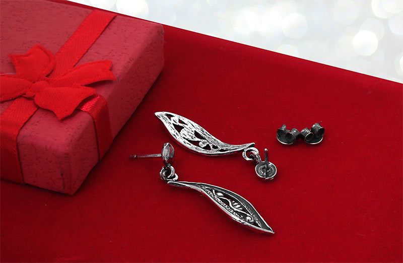 Kolczyki wykonane w całości z oksydowanego srebra próby 925.