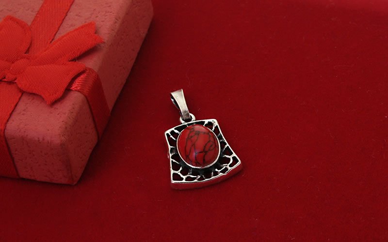 Osadzony w wisiorku koral osiąga 10 mm długości i 7 mm szerokości.