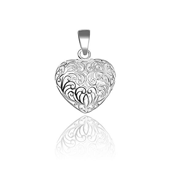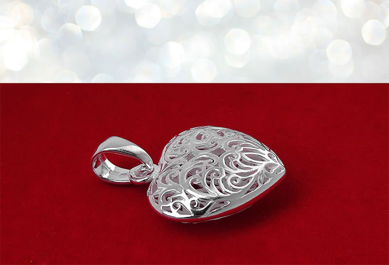 Wisiorek jest dwustronny. W atrakcyjnym, ażurowym wzorze.