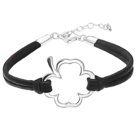 Bransoletka na czarnym rzemyku koniczyna