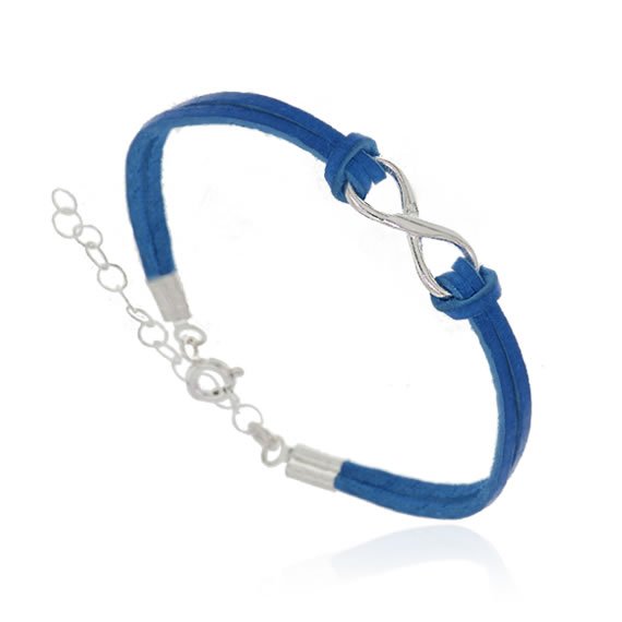 Wysokiej jakości bransoletka damska wykonana z połączenia skórzanego rzemyku (naturalna skóra) z elementami prawdziwego srebra.Bransoletka posiada niezwykle modną ozdobę nieskończoności. Ozdoba wraz z zapięciem i łańcuszkiem wykonana w całości z czystego srebra wysokiej jakości próby 925. Całkowita waga bransoletki wynosi 2g.