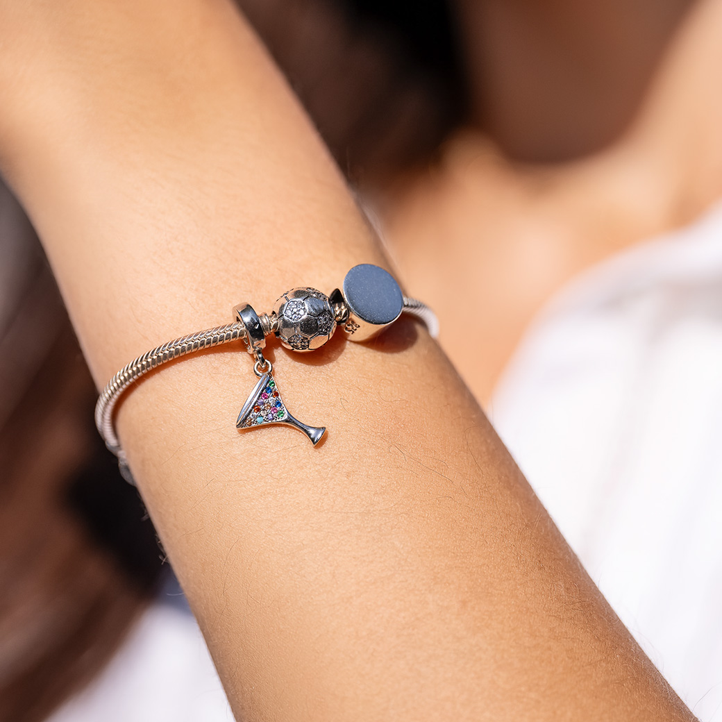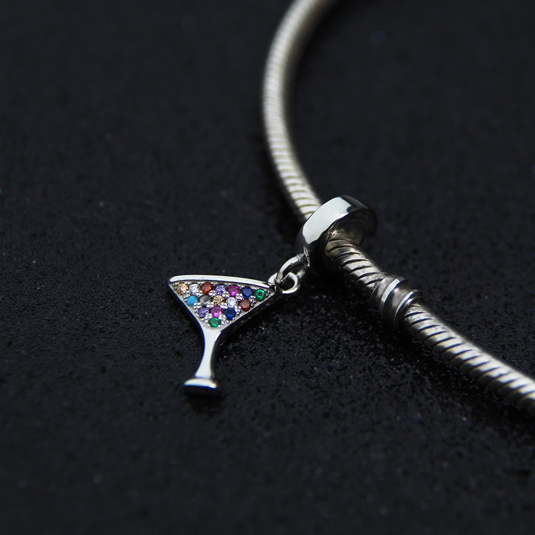 Charms z miniaturą drinka to zabawny i nietypowy dodatek do Twojej bransoletki, który idealnie nadaje się jako pamiątka letnich przyjęć lub wieczornych wyjść i wakacji. Dodatkowo ozdobiony jest wielokolorowymi cyrkoniami.