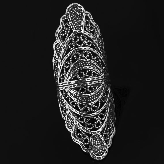 Przepiękny i niezwykle oryginalny pierścionek o długości ponad 5 cm.