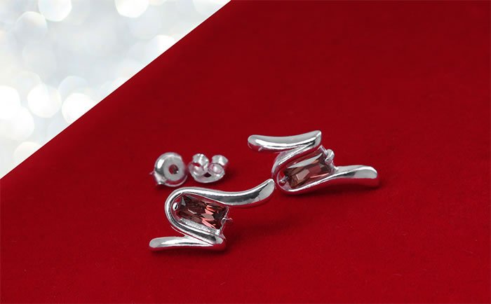 Kolczyki wykonane zostały ze srebra próby 925, ozdobione prostokątnymi cyrkoniami o wymiarach 6×3 mm w delikatnym brązowym kolorze.