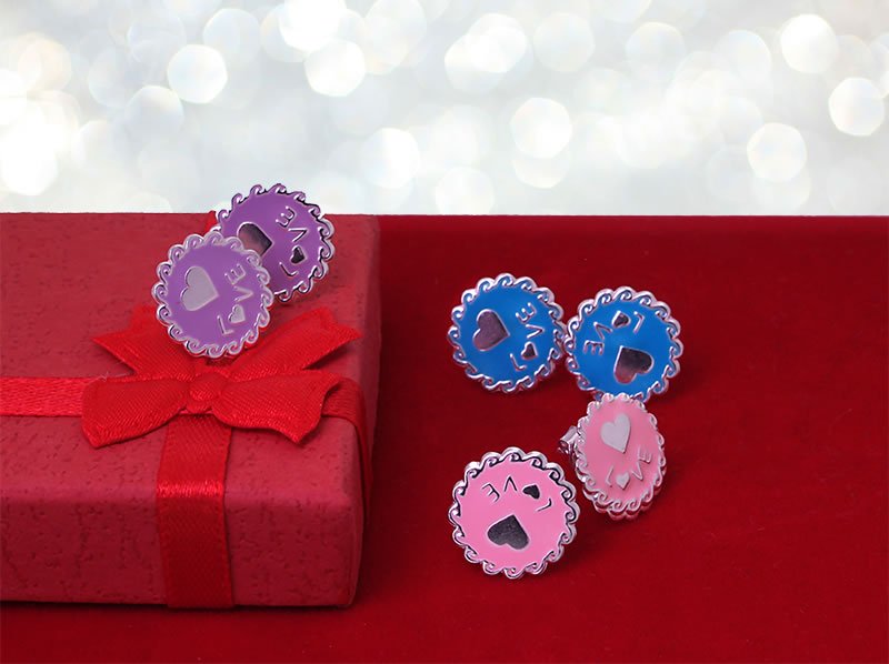 Kolczyki w naszym sklepie dostępne w 3 kolorach: fioletowym, niebieskim i różowym.