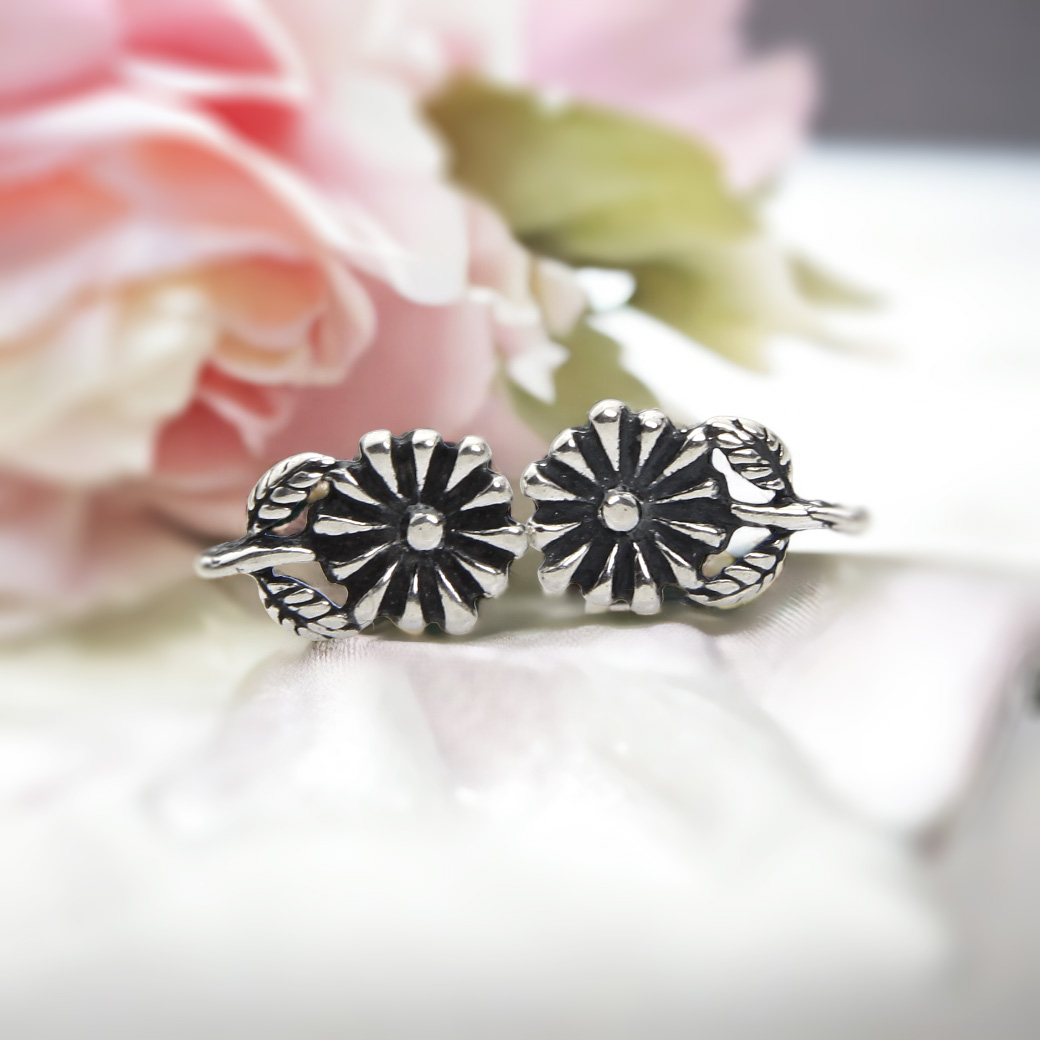 Para piękny margaretek wykonana w całości z oksydowanego srebra próby 925.