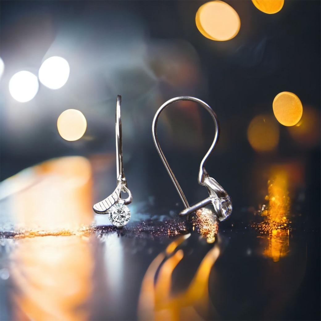 Kolczyki – liść nad białą cyrkonią