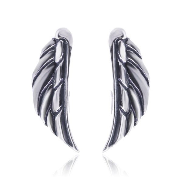 Kolczyki wykonane w całości z oksydowanego srebra próby 925. Posiadają zapięcie typu bigiel otwarty oraz specjalną konstrukcję, która pozwala na noszenie biżuterii dwojako – można kolczyki nosić klasycznie lub jako nausznicę, która zdobi cały dół ucha. Kolczyk o długości 2,4cm, szerokośći 9mm i grubości 7mm. Całkowita waga pary: 2,4g.