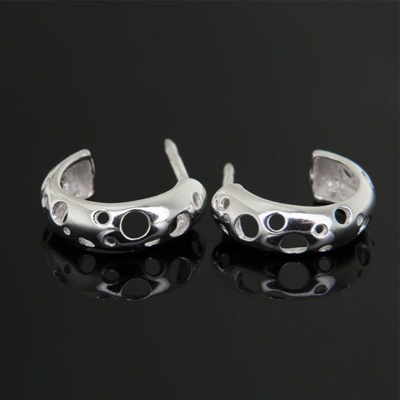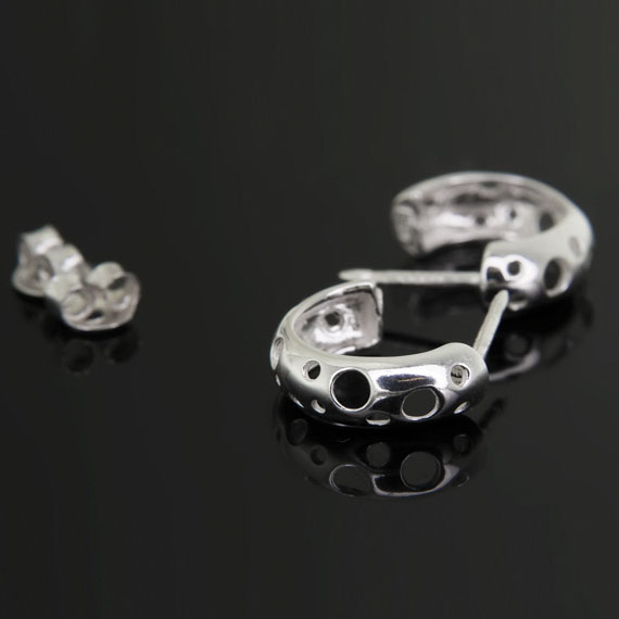 Srebrne pół oponki posiadają wycięcia w kształcie kółek.
