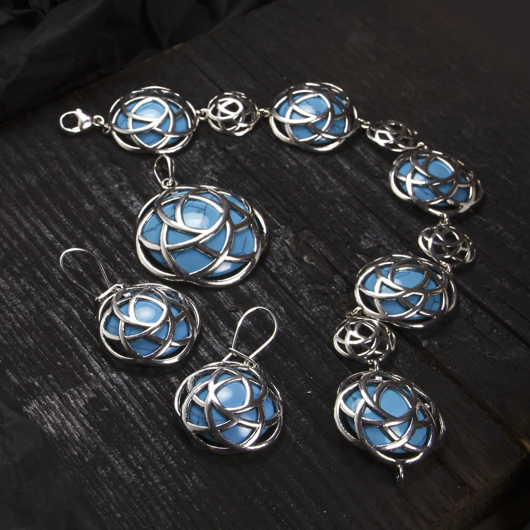 Wykonane z dbałością o detale i szczegóły, dzięki czemu zachwycą najbardziej wymagające osoby. Wypolerowane na połysk i ozdobione pięknymi turkusami (kamieni syntetyczne). Na życzenie zamki kolczyków wymienimy na zapięcia angielskie GRATIS!!
