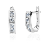 Wyjątkowe kolczyki wykonane ze srebra próby 925, pokryte warstwą rodu, co nadaje im lustrzany blask oraz zwiększoną odporność na zarysowania. Subtelne, minimalistyczne, posiadają rząd cyrkonii, które dodają im niezwykłej elegancji i blasku. Kolczyki wyposażone są w wygodne i bezpieczne angielskie zapięcie, co sprawia, że są idealnym wyborem na każdą okazję. Te piękne kolczyki to perfekcyjny dodatek dla każdej kobiety, która ceni sobie klasyczną elegancję.