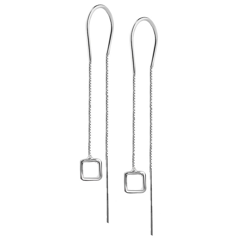 Kolczyki osiągają długość 5,4 cm (przód), 6,7 cm (tył). Srebrne patyczki zawieszone na łańcuszkach mierzą 2,2 cm długości, a boki kwadratów mierzą 0,6 cm.