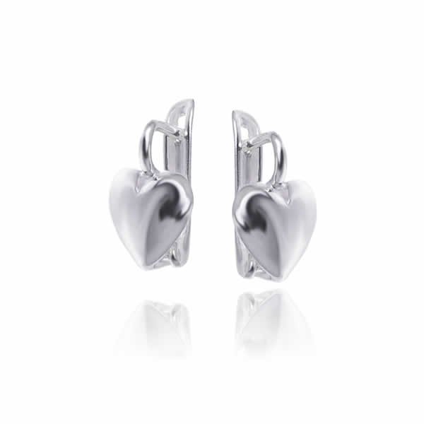 Wysokiej jakości kolczyki w kształcie serca, wykonane z czystego srebra próby 925, które gwarantuje wyjątkowy blask i wysoką jakość. Całkowita długość kolczyków (łącznie z zapięciem) wynosi 1,6cm. Kolczyki posiadają zapięcie typu angielskiego, które jest niewidoczne podczas noszenia (kryje się za uchem) i nie wpływa na kształt i konstrukcję kolczyka. Prosty, ale efektywny wygląd zapewnia kolczykom unikalny i atrakcyjny wygląd. Całkowita waga pary: 2,2g.