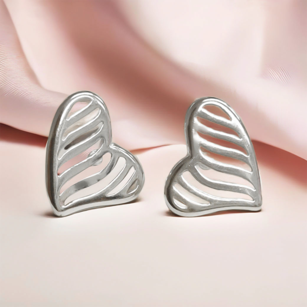 Strona główna Srebrna biżuteria Kolczyki Kolczyki serca w paski