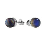 Kolczyki ze szklanym kamieniem opalizującym na ciemne barwy niebieskości, zieleni czy fioletu.