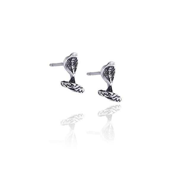 Wykonane w całości z wysokiej jakości oksydowanego srebra próby 925 kolczyki z niecodziennym wężowym motywem. Posiadają wygodne zapięcie typu sztyft, które chowa się za uchem i świetnie zabezpiecza kolczyki przed ich zgubieniem. Wymiary okularów: 9x6mm. Waga pary: 0,9g.