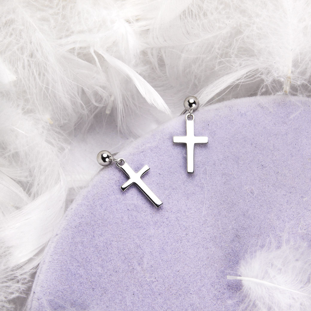 Gładkie, wypolerowane na błysk i pięknie odbijające krzyżyki podwieszone na srebrnej kuleczce. Kolczyki z pięknie prezentującym ten model zapięciem – typ sztyft (zatyczki/baranki w zestawie).