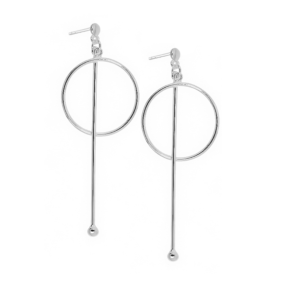 Posiadają wygodne zapięcie typu sztyft. Kolczyki składają się ze srebrnych patyczków o długości 6,2 cm, zakończonych srebrną kulką o średnicy 4 mm. Ozdobione są również kółkami o średnicy 2,6 cm.
