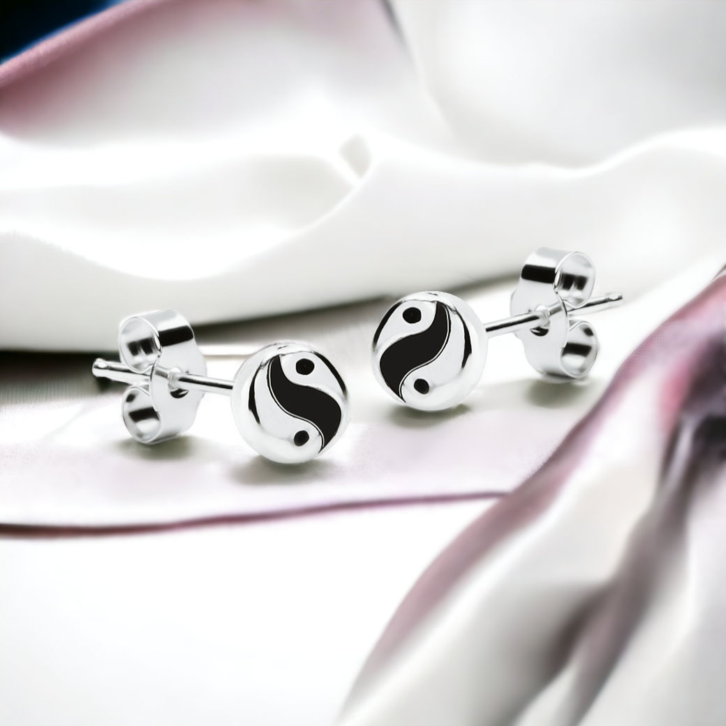 Kolczyki przedstawiające symbol Yin Yang, która oznacza równowagę pomiędzy przeciwstawnymi siłami: dobrem i złem, pozytywną i negatywną energią, światłem i mrokiem. Choć są to siły przeciwstawne, to jednocześnie są wobec siebie komplementarne, uzupełniają się nawzajem, przez co określają wszystkie aspekty składające się na wszechświat.