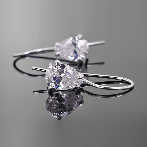 W kolczykach osadzona została biała cyrkonia w kształcie łezki osiągającej wymiary 10 x 7 mm.