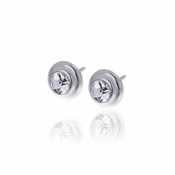 Kolczyki wykonane są z wysokiej jakości srebra próby 925 i ozdobione dżetami o średnicy 5mm. Kolczyk osiąga wysokość 8,5mm i grubość 4mm. Całkowita waga pary: 2,2g.