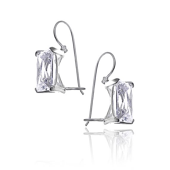 Biała cyrkonia zamknięta w trójkątnym koszyczku.