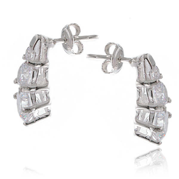 Kolczyki ozdobiono 3 osadzonymi cyrkoniami o średnicach: 3mm, 5mm i 7mm.