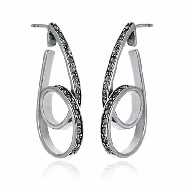 Wysokiej jakości damskie kolczyki wykonane przy połączeniu srebra próby 925 oraz błyszczących się kamieni. Na pojedynczym kolczyku umieszczono 21 białych dżetów. Kolczyki posiadają wygodne zapięcie typu sztyft, które świetnie prezentuje biżuterię i chroni przed jej zgubieniem (zapięcia baranki w komplecie). Całkowita długość kolczyka: 3,5cm. Waga pary: 7,2g.