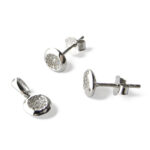 Błyszczące koła ozdobione w środku licznymi białymi cyrkoniami o średnicy 1 mm.