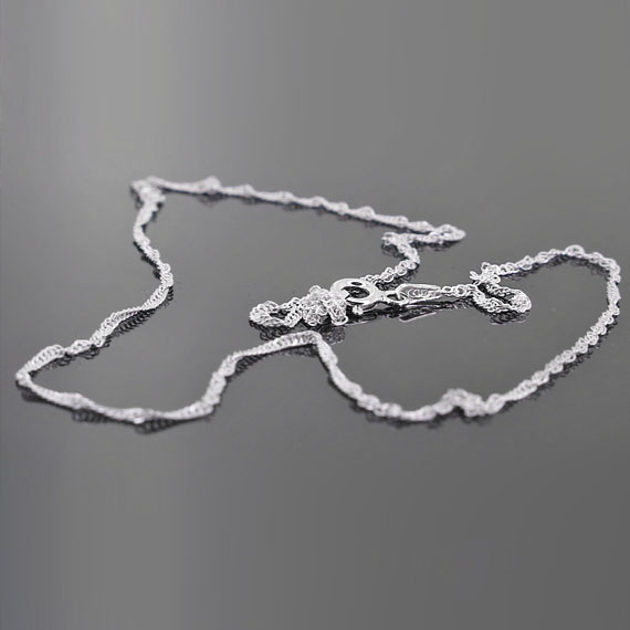 Łańcuszek o ciekawym splocie singapur. Świetnie wygląda w towarzystwie przywieszek jak i solo.