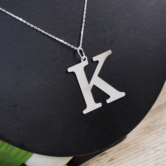 Literka zdobiąca łańcuszek mierzy 3 cm wysokości (bez zawieszki).
