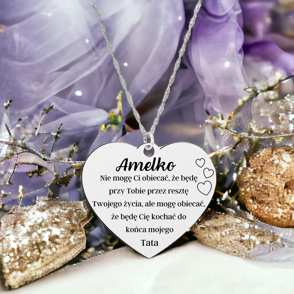 Serce z wygrawerowanym tekstem, zawieszone na pięknym łańcuszku o niezwykle kobiecym splocie.