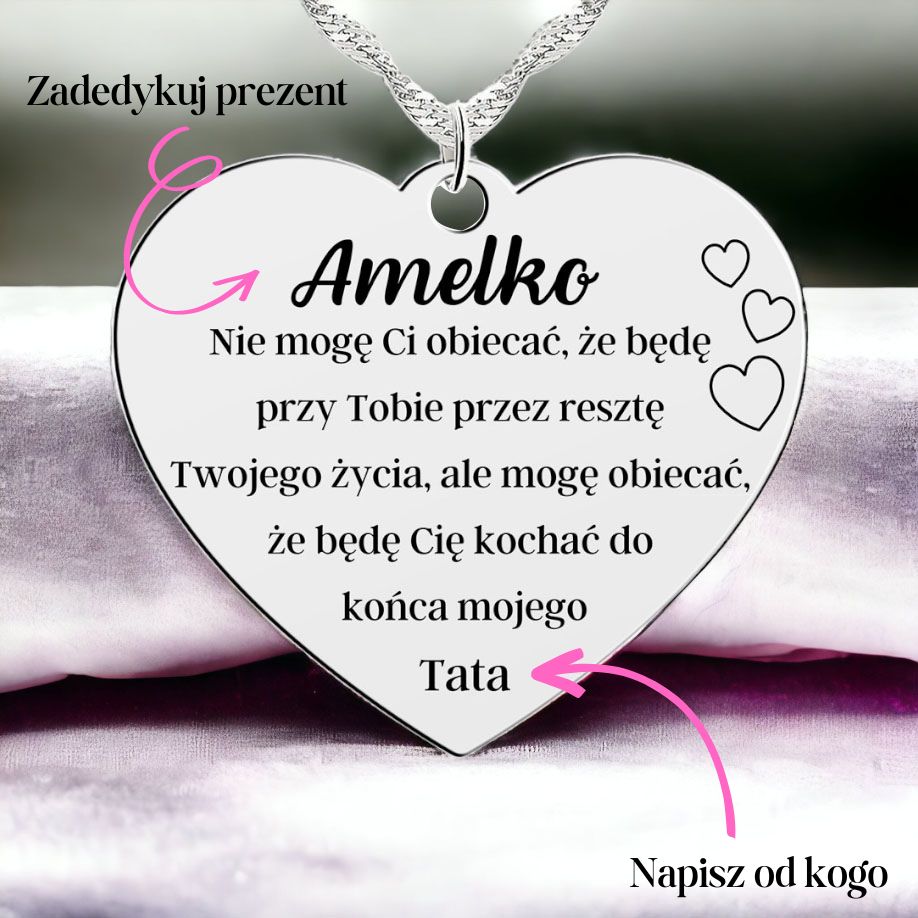 Wyjątkowy naszyjnik z wyrazami miłości i chwytającą za serce obietnicą. Doskonale sprawdzi się jako wzruszający prezent dla przyjaciółki, córki, siostry lub żony.
