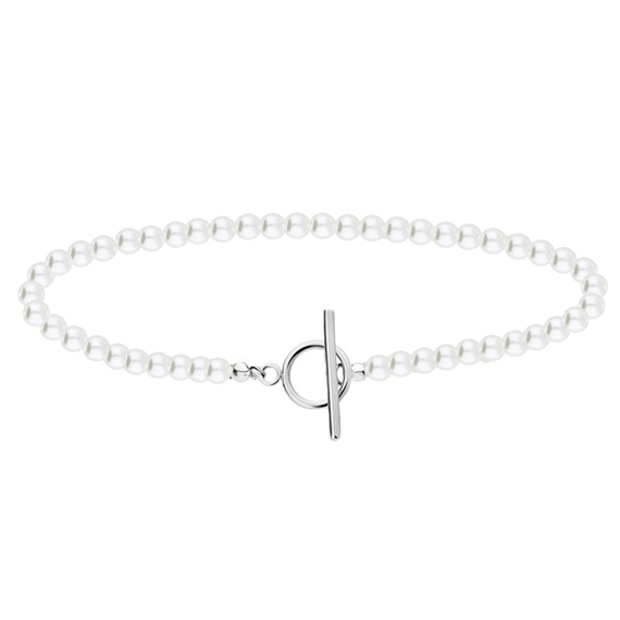 Naszyjnik ozdobiony perełkami (syntetyczne) o średnicy 6 mm. Zapięcie wykonane ze srebra próby 925.