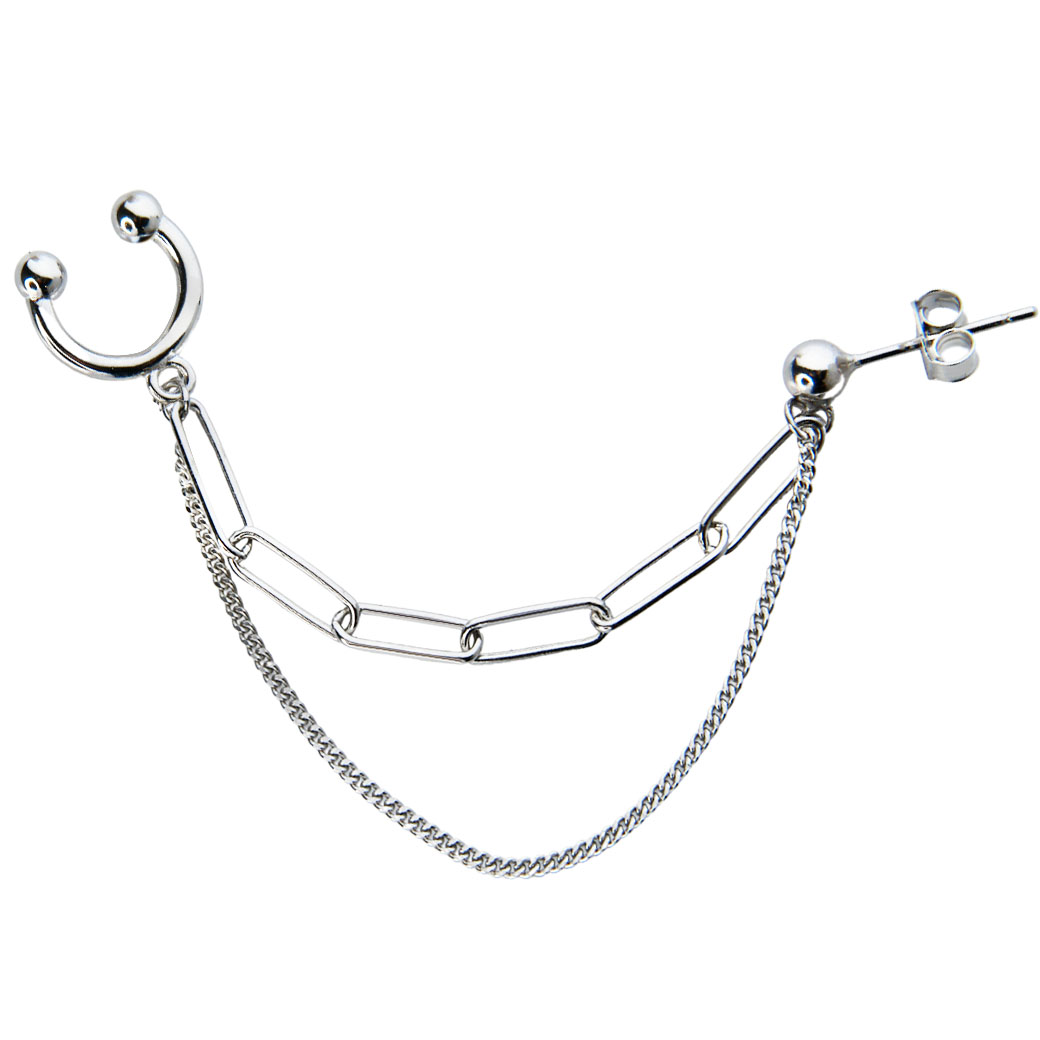 Nausznica z podwójnym łańcuszkiem w tym z łańcuszkiem o najmodniejszym splocie szerokich ogniw.