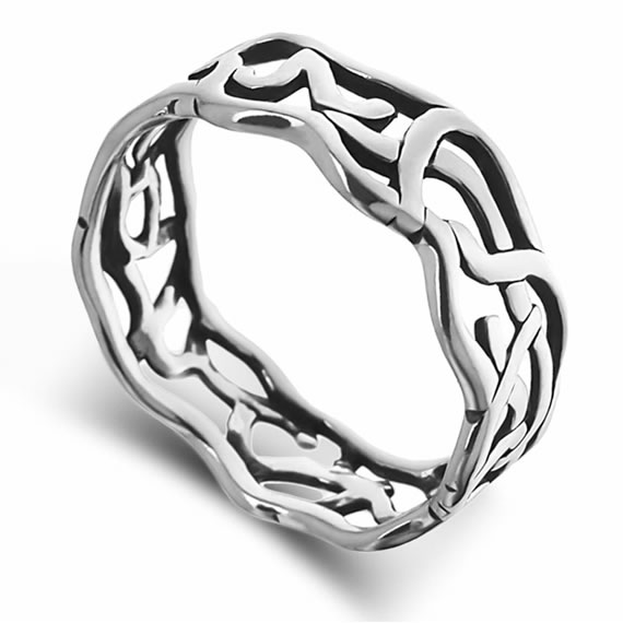 Obrączka wykonana z materiałów najwyższej jakości – oksydowanego srebra próby 925. Niezwykle atrakcyjny kształt i przyciągający uwagę wzór skradnie serce wszystkim miłośniczkom ażurowego stylu w biżuterii. Wysokość obrączki wynosi 7mm. Wysoka jakość wykonania zapewnia trwałość na wiele lat. Pierścionek o wadze 2,2g.