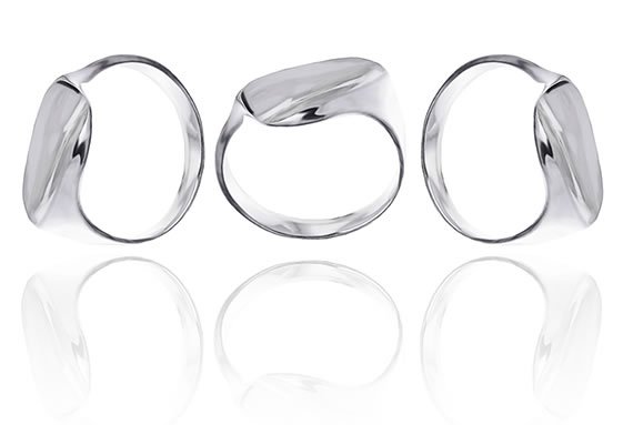 Pierścionek w całości wykonany z najwyższej jakości srebra próby 925. Przód pierścionka osiąga wysokość 10mm i 2,5mm grubości. Wysokość obrączki od 3 do 4,5 mm (rozszerza się ku przodowi). Całkowita waga pierścionka: 2,3g.