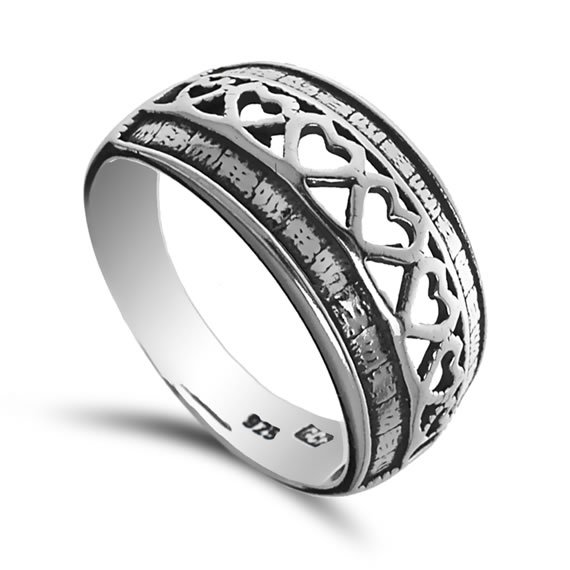 Pierścionek wykonany został z materiałów najwyższej jakości – oksydowanego srebra próby 925. Niezwykle atrakcyjny kształt i przyciągający uwagę wzór skradnie serce wszystkim miłośniczkom klasycznych, ale zdobionych pierścionków. W najwęższym miejscu pierścionek o wysokości 4mm, natomiast w najszerszym osiąga 9mm. Wysoka jakość wykonania zapewnia trwałość na wiele lat. Pierścionek o całkowitej wadze 2,6g.