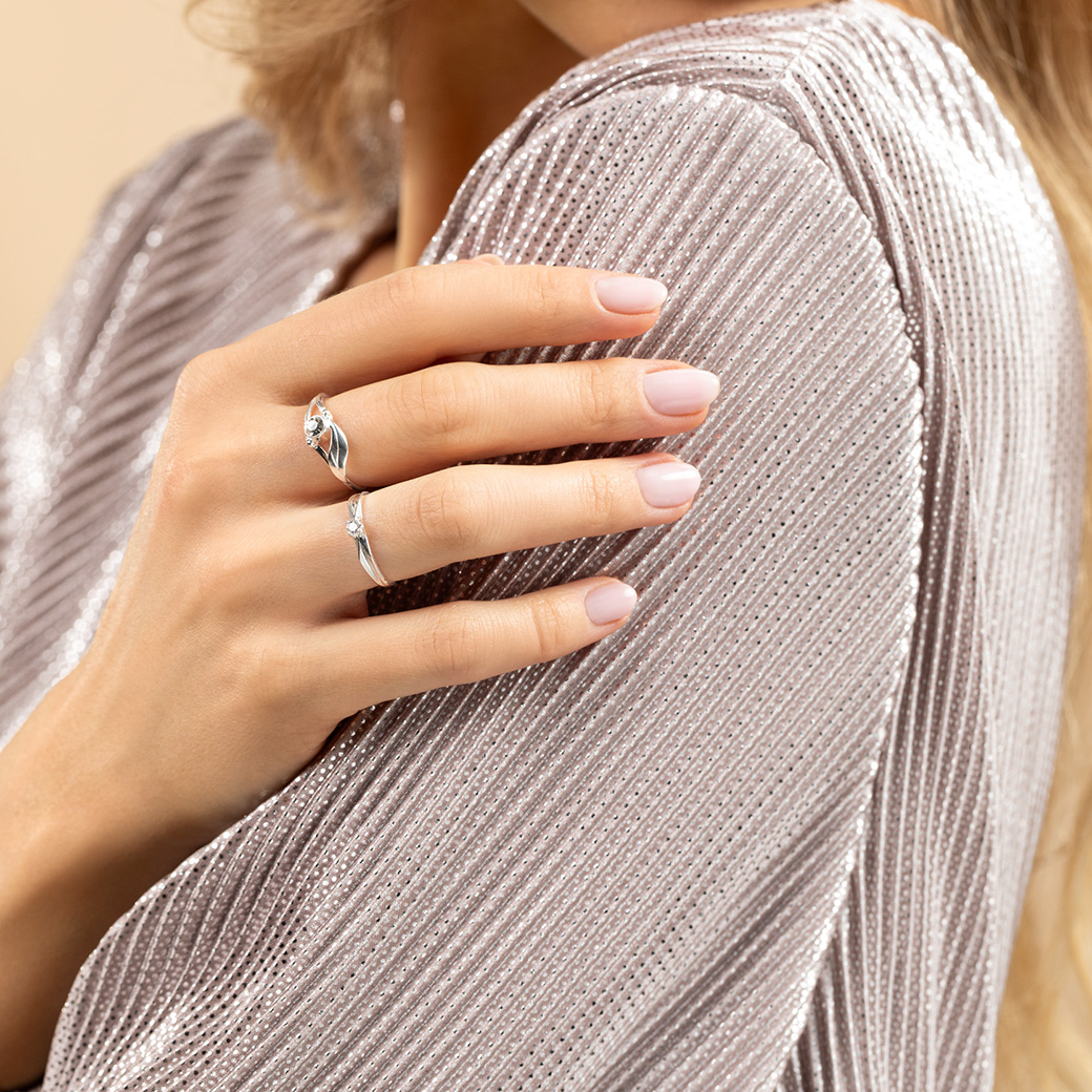 Mała cyrkonia umieszczona centralnie dodaje mu subtelności i delikatnego blasku, idealnie komponując się z geometrycznym wzorem. To biżuteria, która doskonale sprawdzi się zarówno jako delikatny dodatek do codziennych stylizacji, jak i wyjątkowy akcent do bardziej eleganckich kreacji.