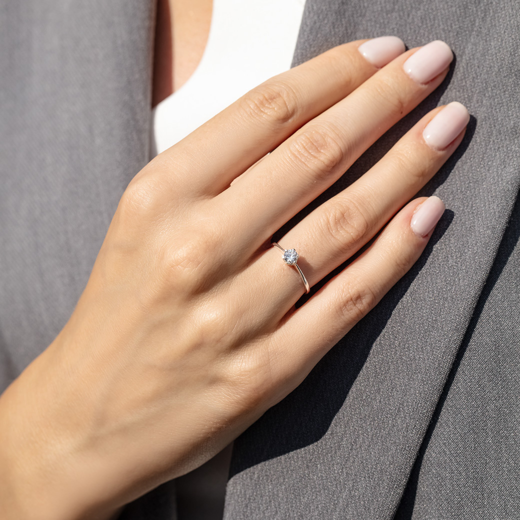 - W srebrnym koszyku osadzona została biała cyrkonia