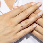 - Obrączka pierścionka zwęża się w stronę kamienia