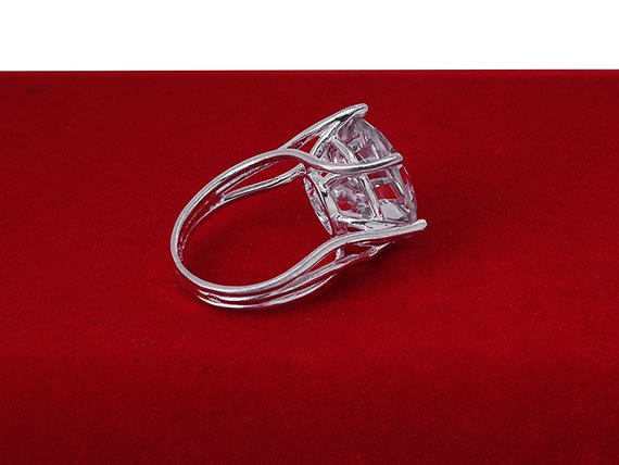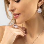 Pierścionek wykonany ze srebra próby 925, z osadzoną białą cyrkonią o średnicy 18mm.