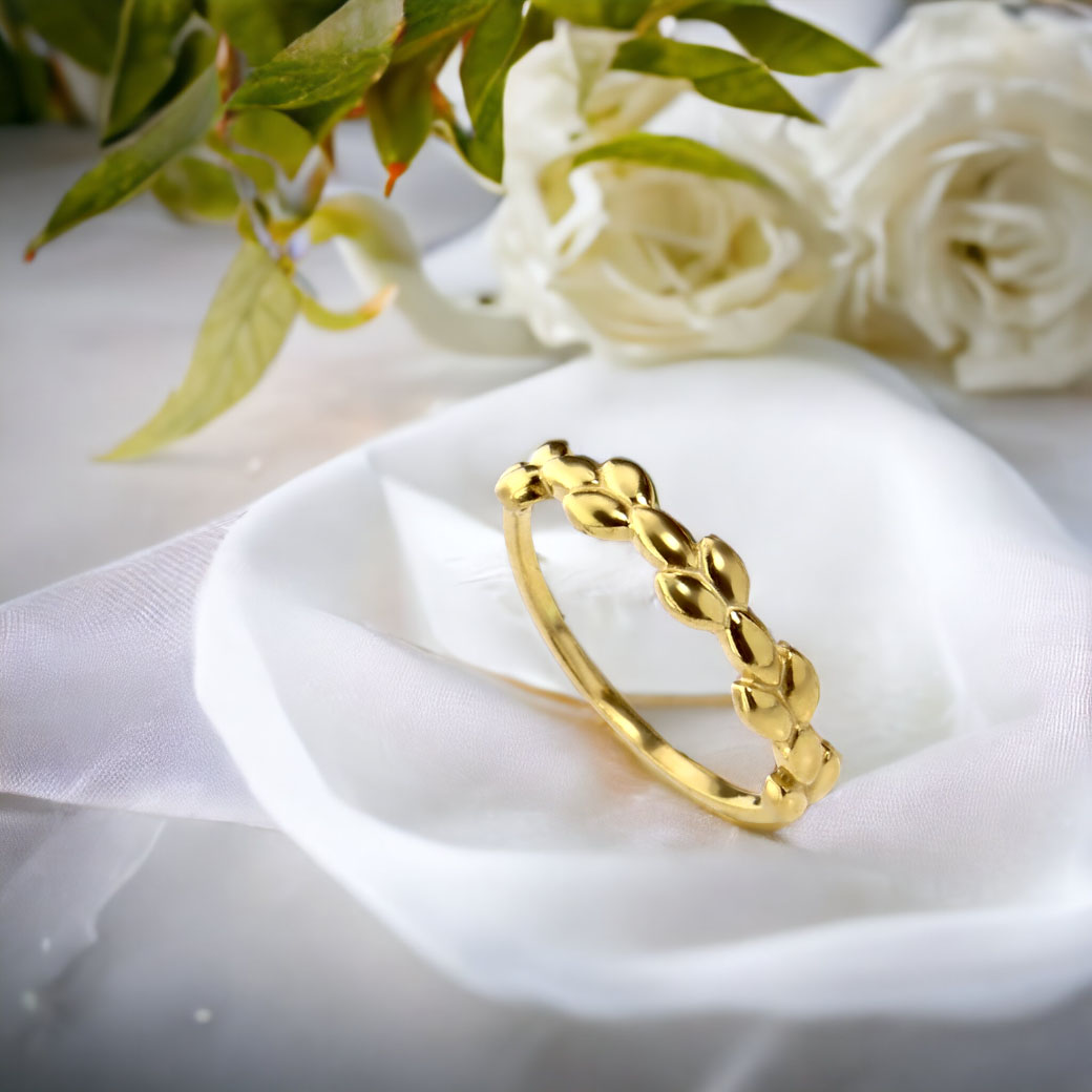 Kłos, który zdobi połowę obrączki, sprawia, że wzór zdobi cały przód pierścionka, dodając mu wyjątkowego uroku.