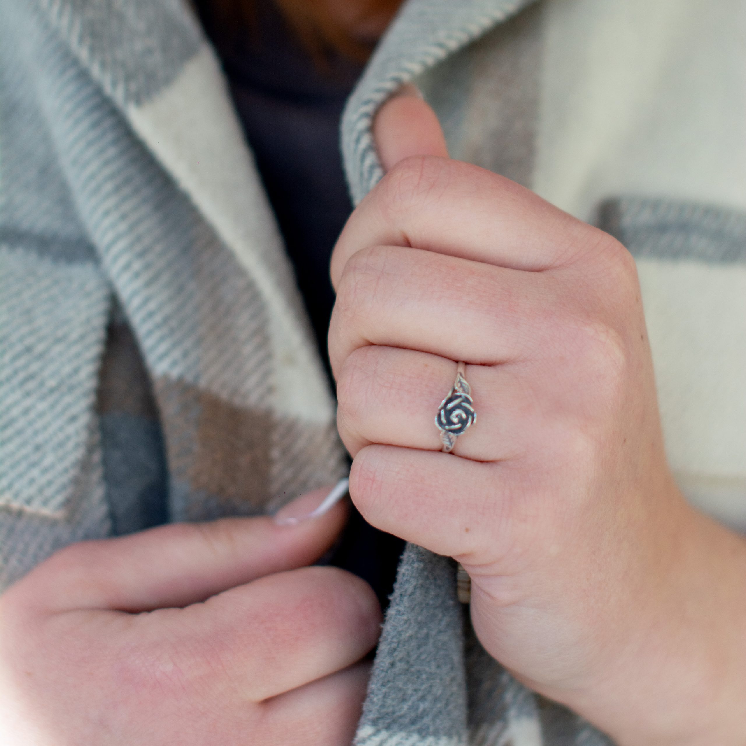 Pierścionek wykonany w całości z wysokiej jakości oksydowanego srebra próby 925.