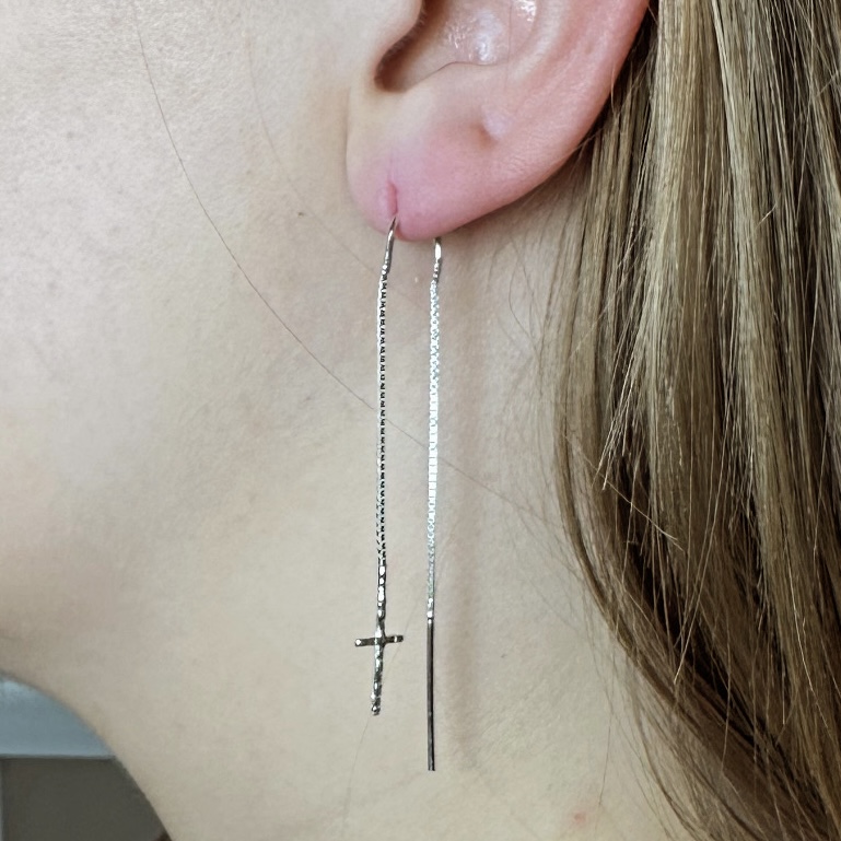 Kolczyki osiągają długość 6,8 cm (tył), 6,1 cm (przód). Krzyżyk o długości 1,3 cm i szerokości 7,5 mm z jednej strony posiada delikatne zdobienie, z drugiej strony jest gładki.