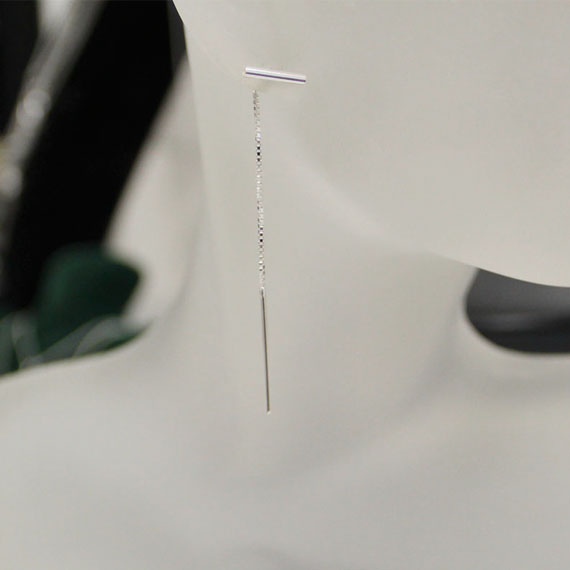 Bardzo modne wiszące kolczyki z minimalistyczną ozdobą. Wykonane ze srebra próby 925.