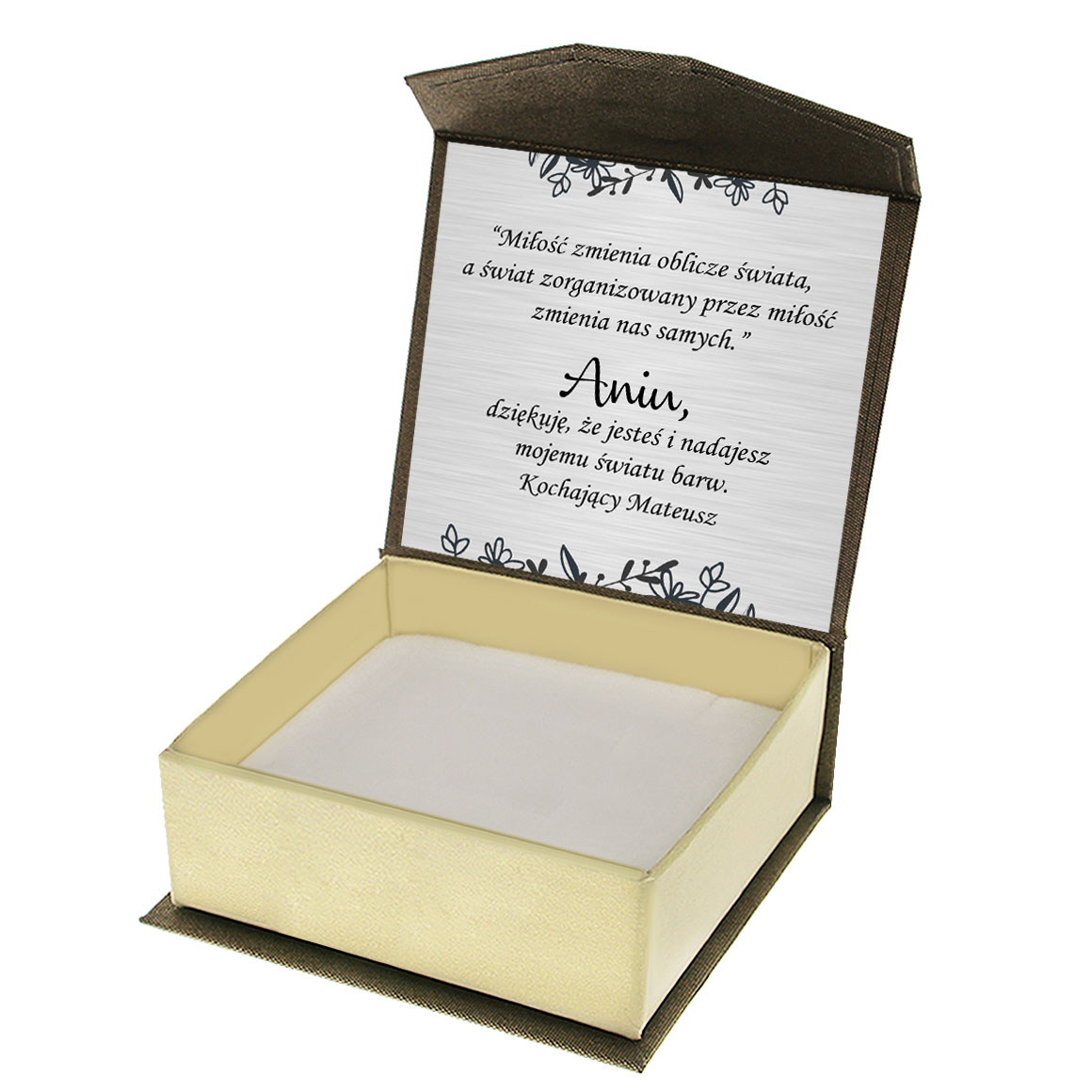 Biżuteria to zawsze doskonały pomysł na prezent, a nasze pudełko z personalizowaną dedykacją to świetne dopełnienie dla każdego prezentu, dzięki czemu staje się jedyny, wyjątkowy i stworzony z myślą o danej osobie.