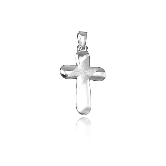 Wszystkie ramiona krzyżyka są zaokrąglone, przez środek krzyżyka przechodzi matowy skos.